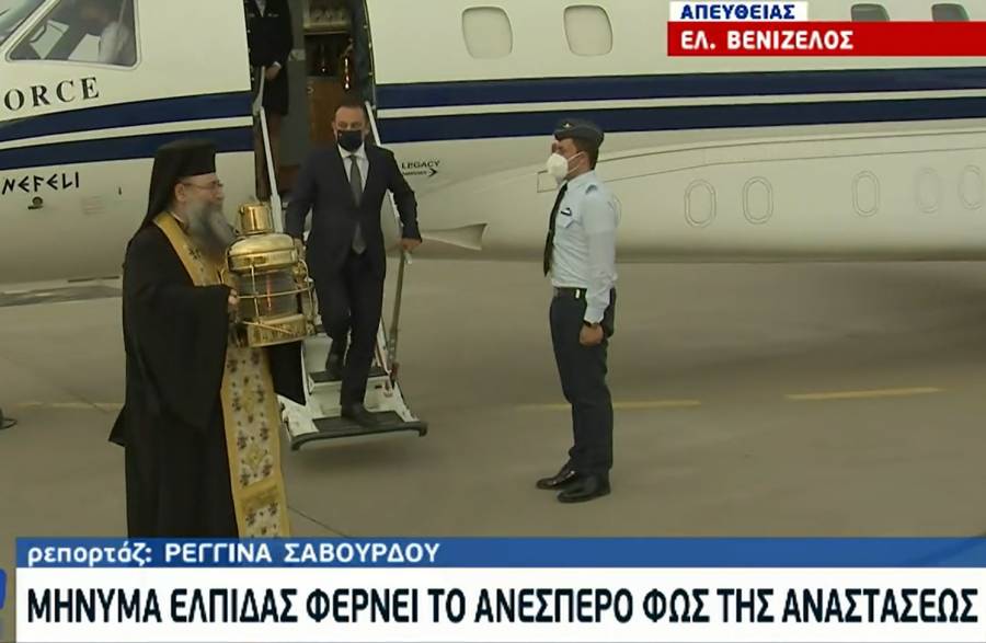 Στον αεροδριάδρομο υπήρχαν την ώρα της άφιξης του Αγίου Φωτός περίπου 20 άνθρωποι και οι αστυνομικοί που βρίσκονταν στο σημείο για τα μέτρα ασφαλείας.