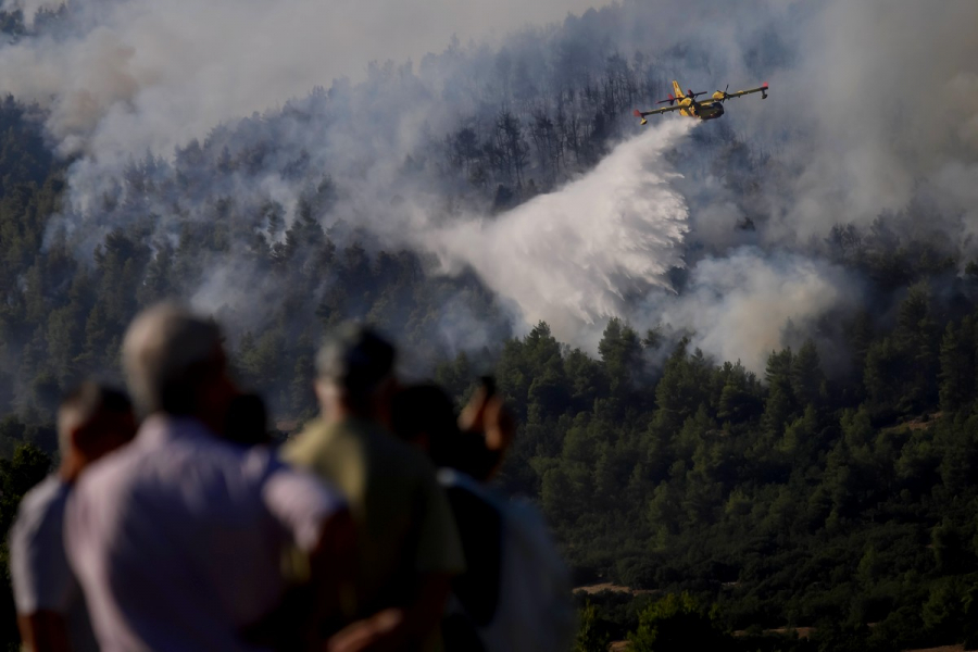 Η φωτιά ξεκίνησε να καίει στα Βίλια το μεσημέρι της Δευτέρας (16/08) και από εκείνη η στιγμή καίει ανεξέλεγκτη.