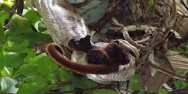 Φαίνεται όμως ότι σε μερικές περιπτώσεις η άμυνα της ομάδας δεν είναι αρκετή. Στο συγκεκριμένο περιστατικό, που συνέβη στον Αμαζόνιο στη Βραζιλία, ένας θηλυκό κόκκινος πίθηκος του είδους Alouatta puruensis, ξέφυγε από την υπόλοιπη ομάδα στο τροπικό δάσος, ακολουθούμενο από ένα ακόμη θηλυκό. Ξαφνικά ένας βόας που κρυβόταν στα κλαδιά επιτέθηκε στον πίθηκο, συνθλίβοντάς το και στη συνέχεια καταπίνοντάς τον.