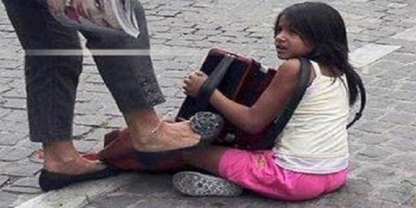 Η φωτογραφία μιλάει από μόνη της, εξάλλου ο διάσημος φωτογράφος δεν τη συνοδεύει από πολλά σχόλια. Η ιδιοκτήρια κλωτσάει το παιδάκι με το παπούτσι-μπαλαρίνι, προφανώς για να της αδειάσει τη γωνιά.