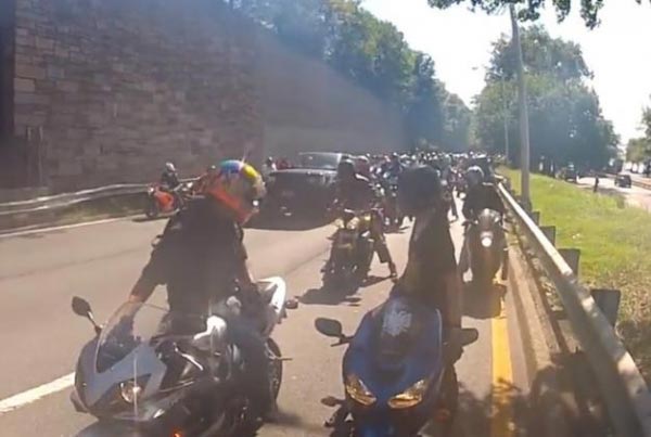Το περιστατικό συνέβη στη Νέα Υόρκη. Μία ομάδα μοτοσικλετιστών έκανε βόλτα με τις μηχανές τους σε οδό ταχείας κυκλοφορίας έξω από την πόλη. Κάποια στιγμή ένας οδηγός τζιπ Range Rover χτύπησε μία μηχανή από πίσω! Τότε η πομπή σταμάτησε για να δει τί συνέβαινε. Αμέσως μετά ο οδηγός του τζιπ, έβαλε μπροστά και πάτησε έναν μοτοσικλετιστή προκειμένου να αποφύγει το κονβόι των μηχανών, με αποτέλεσμα ο άτυχος άνδρας να χάσει τη ζωή του, όπως αναφέρουν πηγές.
