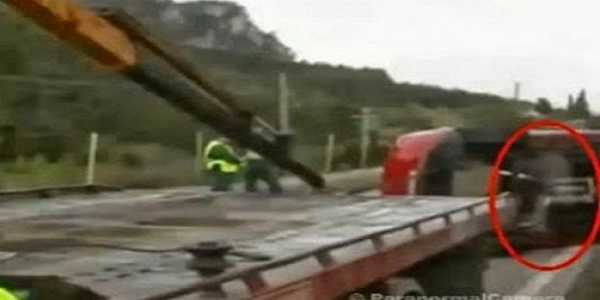 Μια πνευματική οντότητα εμφανίζεται με τα πόδια εγκαταλείποντας το αυτοκίνητο δεδομένου ότι γαντζώνεται σε ένα φορτηγό ρυμούλκησης.