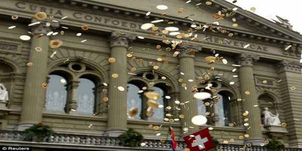 Οι ακτιβιστές συγκέντρωσαν 15 τόνους κερμάτων στο χρηματοκιβώτιο της τράπεζας «Basler Volksbank» και σήμερα άρχισαν να τα σκορπούν μπροστά από το κτήριο της Βουλής στη Βέρνη, την πρωτεύουσα της Ελβετίας.