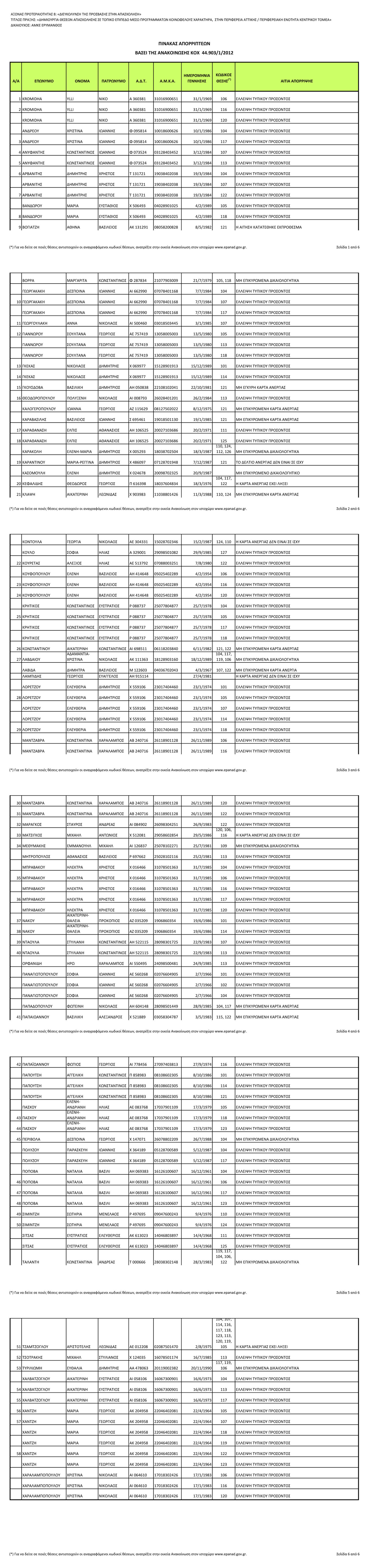 Η ΑΜΚΕ Ερύμανθος ανακοινώνει ότι σήμερα 11 Σεπτεμβρίου 2012, ημέρα Τρίτη αναρτήθηκαν οι πίνακες κατάταξης υποψηφίων, ωφελουμένων και απορριπτέων που αφορούν στην πρόσληψη προσωπικού με σχέση εργασίας Ιδιωτικού Δικαίου ορισμένου χρόνου συνολικά σαράντα οχτώ (48) ατόμων για την υλοποίηση προγράμματος Κοινωφελούς Χαρακτήρα (ΚΟΧ) στην Περιφέρεια Αττικής- Κεντρικός Τομέας, σύμφωνα με την υπ' αριθμόν ΚΟΧ 44.903/1/2012 σχετική ανακοίνωση.