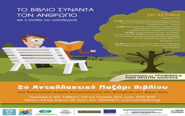 Στο τριήμερο παζάρι βιβλίου που διοργανώνεται για δεύτερη φορά, μετά την επιτυχία του πρώτου, με σκοπό την ενίσχυση του Κοινωνικού Παντοπωλείου και του Κοινωνικού Συσσιτίου, θα διατεθούν βιβλία κάθε είδους: λογοτεχνικά, παιδικά βιβλία και παραμύθια, επιστημονικά συγγράμματα κτλ. Οι ενδιαφερόμενοι θα μπορούν να αποκτήσουν το βιβλίο που επιθυμούν, προσφέροντας ως «αντίτιμο» είδη πρώτης ανάγκης (τρόφιμα, είδη ατομικής υγιεινής κτλ.).
