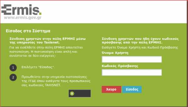 Σύνδεση χρηστών στην πύλη ΕΡΜΗΣ μέσω της υπηρεσίας του Taxisnet.