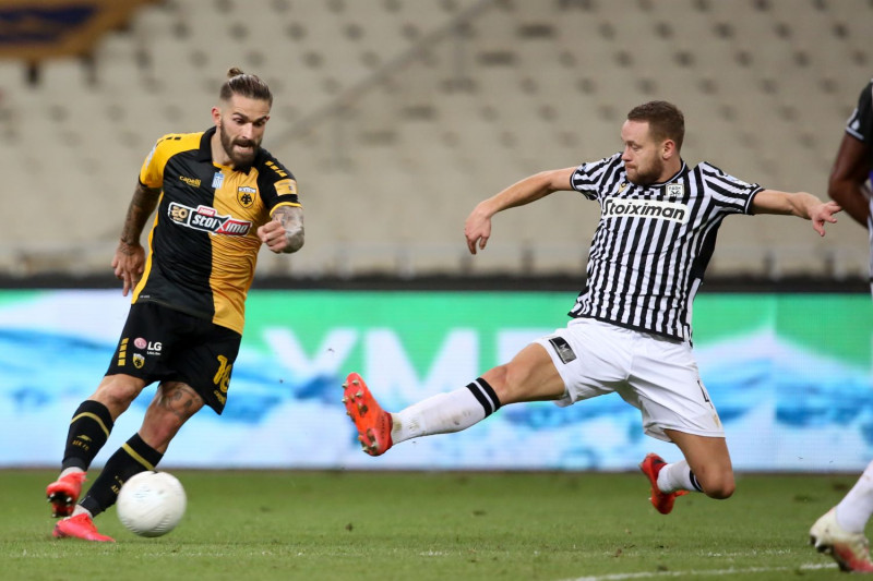 Ο «δικέφαλος του βορά» στο πρώτο 20λεπτο πατούσε καλύτερα και οι παίκτες του έβγαιναν απειλητικά προς την περιοχη της ΑΕΚ, όμως οι τελικές τους πάσες δεν ήταν τέτοιες που να επιτρέπουν στον Τσιντώτα να ανησυχεί. Στο 21ο λεπτό ο Ζίβκοβιτς σούταρε στην κίνηση από το ύψος της μεγάλης περιοχής, όμως η μπάλα πέρα έξω από τα δοκάρια του, στην πιο αξιόλογη φάση μέχρι εκείνο το σημείο του αγώνα. Κι εκεί που όλα έδειχναν ότι ο ΠΑΟΚ ήταν η ομάδα που έψαχνε πιο ζωηρά το γκολ, η ΑΕΚ άνοιξε το σκορ!