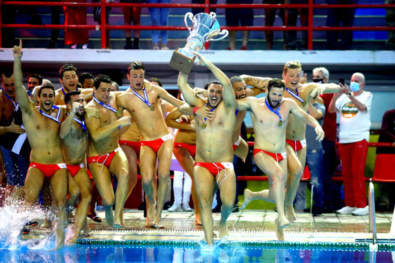 Μετά το τέλος του αγώνα ο Θοδωρής Βλάχος, οι συνεργάτες του και οι παίκτες του Ολυμπιακού γιόρτασαν τον φετινό τίτλο στην Α1 των Ανδρών όπως αρμόζει. Με πανηγυρισμούς εντός και εκτός πισίνας.