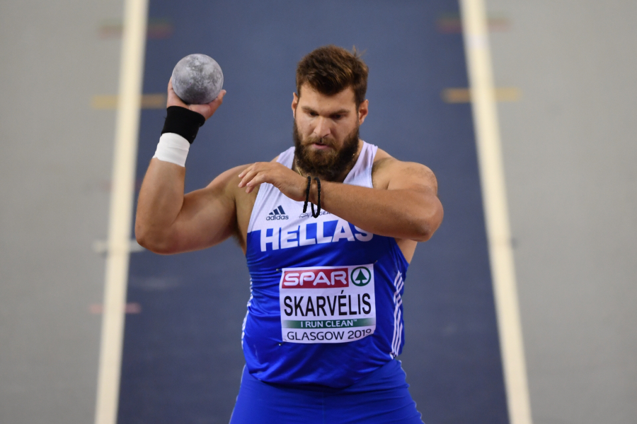 Ο Σκαρβέλης έχει ρεκόρ 20,38 μ. στον κλειστό από τις 18 Ιανουαρίου του 2020 και 21,05 μ. στον ανοιχτό από τις 28 Ιουνίου της ίδιας χρονιάς. Και οι δύο επιδόσεις αποτελούν πανελλήνια ρεκόρ.