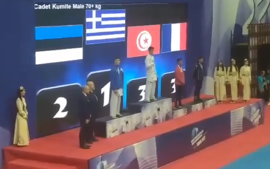 Ο Ελληνας πρωταθλητής επιβλήθηκε 8-0 τον Εσθονό Σαβέλι Μπολότσκι στον τελικό της κατηγορίας και λίγες στιγμές αργότερα ο εθνικός μας ύμνος ακούστηκε στο «Konya Spor ve Kongre Merkezi» της τουρκικής πόλης, οχι όμως ολόκληρος, καθώς οι Τούρκοι τον έκοψαν πριν ολοκληρωθεί.