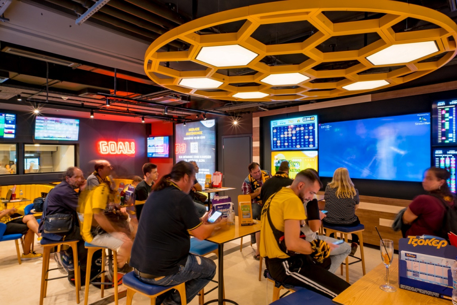 Οι 45 μεγάλες οθόνες, τα LED πάνελ πάνω από τον πάγκο εξυπηρέτησης του καταστήματος και ο κρυστάλλινος ήχος μεταδόσεων απογειώνουν την ποδοσφαιρική εμπειρία.