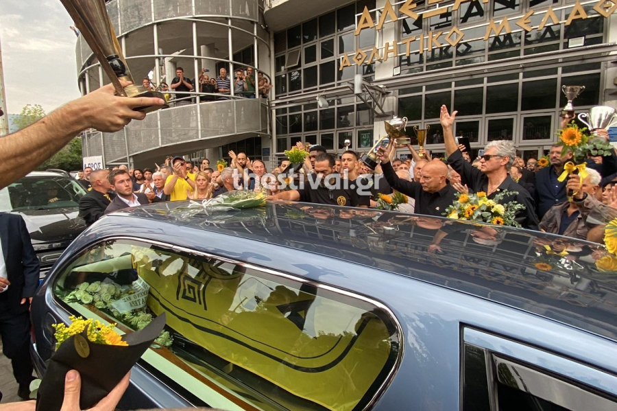 Μάλιστα οι παίκτες κρατούσαν κίτρινα λουλούδια αλλά και όλα τα κύπελλα και τα πρωταθλήματα που πρόσθεσε ο «Ξανθός» στο παλμαρέ των «κιτρινόμαυρων».
