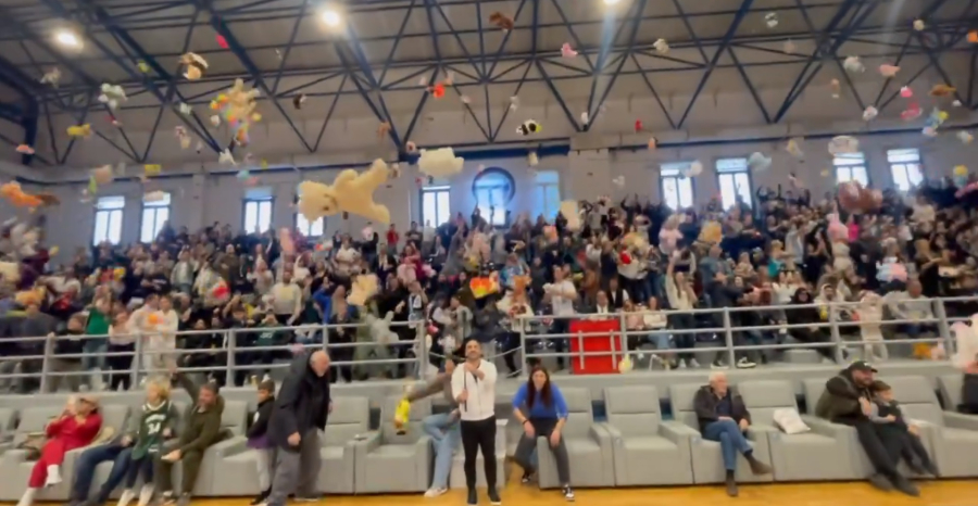 Οι φίλαθλοι της ομάδας, λίγο πριν το τζάμπολ του αγώνα με το Ψυχικό για την Elite League, πέταξαν στο παρκέ εκατοντάδες παιχνίδια για μικρά παιδιά, για τα παιδικά χωριά SOS.