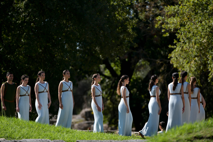 Η Ολυμπιακή φλόγα θα ανάψει στις 16 Απριλίου στην αρχαία Ολυμπία, γενέτειρα των Ολυμπιακών Αγώνων. Σε μια παραδοσιακή τελετή, η ηθοποιός Μαίρη Μηνά που θα υποδυθεί την Πρωθιέρεια για πρώτη φορά θα χρησιμοποιήσει ένα κοίλο κάτοπτρο και τις ακτίνες του ήλιου για να ανάψει τη δάδα.