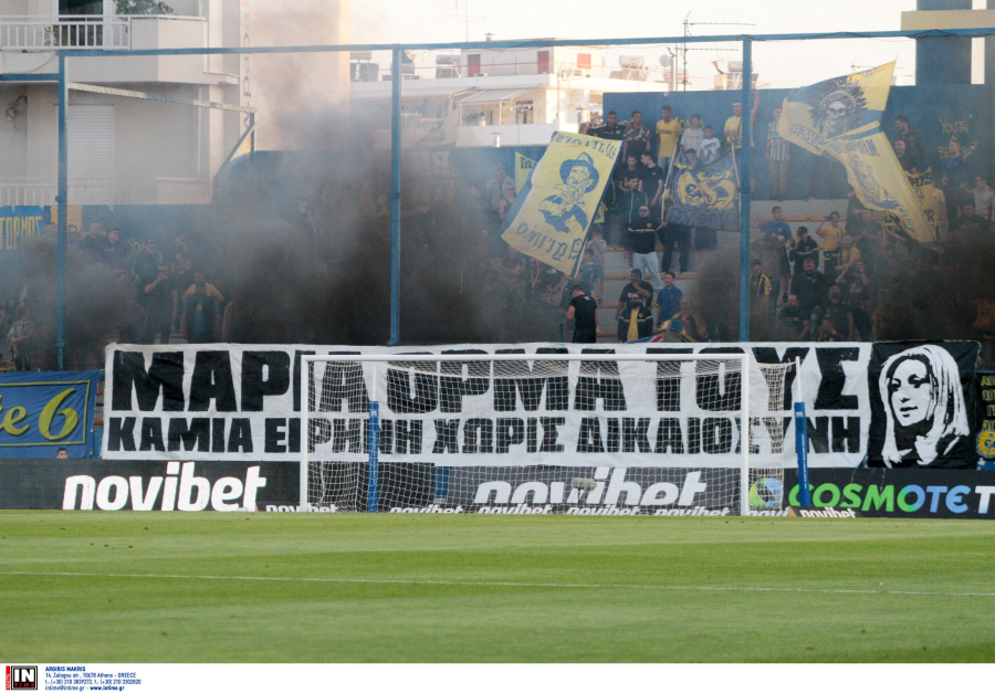 Με μια υψηλού συμβολισμού κίνηση, οι φίλαθλοι της ομάδας του Παναιτωλικού εξέφρασαν την υποστήριξή τους στον αγώνα των συγγενών των δολοφονημένων στα Τέμπη για δικαιοσύνη, αναρτώντας το πανό «Μαρία όρμα τους. Καμιά ειρήνη χωρίς δικαιοσύνη».