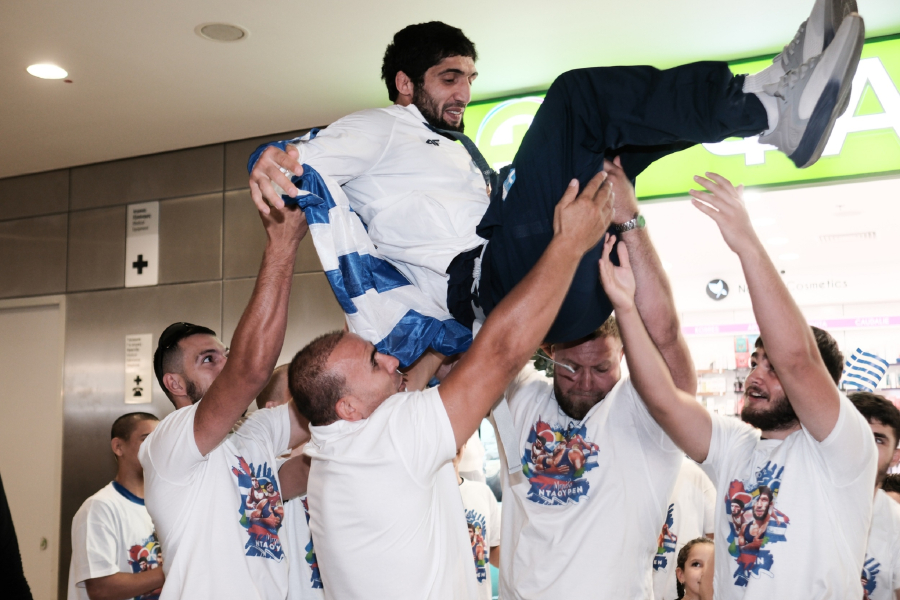 Μάλιστα, φίλοι και συναθλητές του Νταουρέν Κουρουγκλίεβ που τον περίμεναν για να τον υποδεχθούν, μόλις τον είδαν τον σήκωσαν στον αέρα.