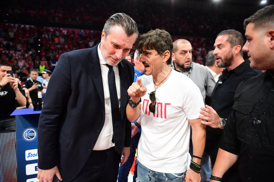 Την προκλητική του συμπεριφορά από την ώρα που εισήλθε στο παρκέ, αλλά και τις απειλές του με αποδέκτη τον Πρόεδρο της ΚΑΕ Ολυμπιακός, κ. Γιώργο Αγγελόπουλο, με αναφορά σε γενετήσια πράξη που αφορά ανήλικο μέλος της οικογένειάς του και πιο συγκεκριμένα την κόρη του.