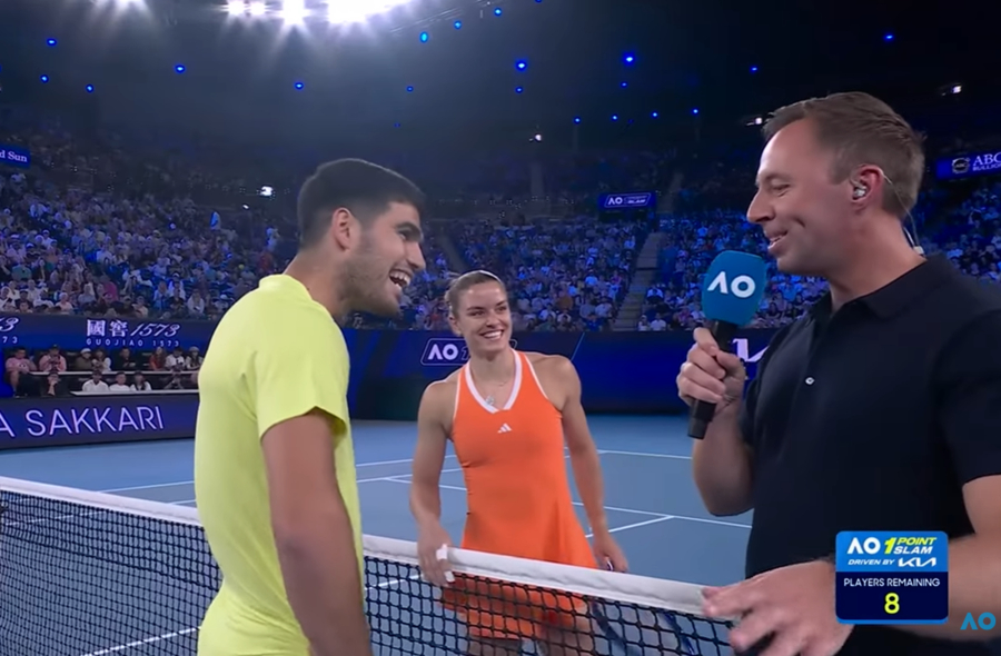 Πριν την αναμέτρησή τους, ο Κάρλος Αλκαράθ δήλωσε ότι δεν θα αφήσει τη Μαρία Σάκκαρη να «μπει» στο μυαλό του. Λίγα λεπτά αργότερα η Ελληνίδα πρωταθλήτρια ήταν εκείνη που χαμογελούσε πλατιά.