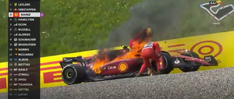 Στον 57ο γύρο του αγώνα και με τον Σάινθ να βρίσκεται στην τρίτη θέση, ο κινητήρας της F1-75 τον ανάγκασε να βρεθεί εκτός πίστας και αμέσως μετά πήρε φωτιά. Ο Ισπανός πιλότος της Ferrari είχε προλάβει να βγει από το μονοθέσιό του.