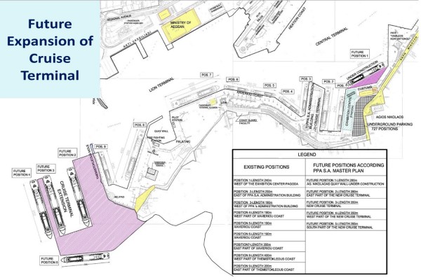 Η κ. Ρήγα αναφέρθηκε στην επέκταση του νότιου λιμένα, όπου θα υπάρχει η δυνατότητα εξυπηρέτησης 4 κρουαζιερόπλοιων νέας γενιάς άνω των 400 μέτρων έκαστο, ενώ προανήγγειλε νέες υποδομές στη χερσαία ζώνη, όπως ξενοδοχεία, εμπορικά κέντρα, εστιατόρια και άλλες υπηρεσίες που θα ενισχύσουν το home porting και θα δημιουργήσουν ενδιαφέρον για μεγαλύτερης διάρκειας παραμονή στον λιμένα, επιβατών κρουαζιέρας και της ακτοπλοΐας. Επίσης, μίλησε για μείωση της γραφειοκρατίας στην εξυπηρέτηση των παρεχόμενων υπηρεσιών προς τις εταιρείες κρουαζιέρας, για προγραμματισμό των αφιξοαναχωρήσεων δύο χρόνια μπροστά και για τη δυνατότητα παροχής καυσίμου 500cst, 700cst και 380cst με χαμηλή περιεκτικότητα σε θείο στα πλοία.