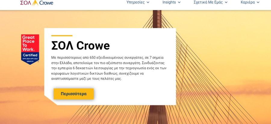 Ο Παναγιώτης Αλαμάνος, Διευθύνων Σύμβουλος, πρόσθεσε: «Στη ΣΟΛ Crowe εξελισσόμαστε συνεχώς δημιουργώντας υπηρεσίες με άξονα τις ανάγκες των πελατών μας. Λειτουργούμε μέσα σε ένα ανθρωποκεντρικό περιβάλλον, έχοντας καλλιεργήσει μία εταιρική κουλτούρα σεβασμού, αποδοχής, και ασφάλειας. Επενδύουμε στην ανοιχτή επικοινωνία και την πολυεπίπεδη συνεργασία, με στόχο να δημιουργήσουμε ένα μέλλον ισότιμο και γεμάτο αξία για όλους».