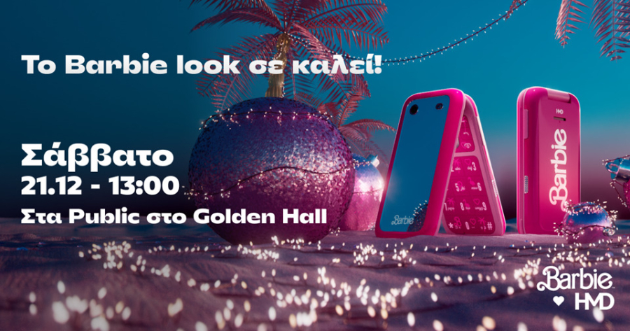 Τα Public υποδέχονται το νέο Barbie phone στο Golden Hall αυτό το Σάββατο, 21 Δεκεμβρίου! Σε μια εκδήλωση γεμάτη εκπλήξεις, από τις 13:00 έως τις 15:00, μικροί και μεγάλοι θα έχουν την ευκαιρία να ανακαλύψουν το νέο HMD Barbie Phone και να απολαύσουν μοναδικές εμπειρίες που έχουν ετοιμάσει τα Public.