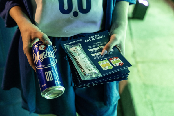 Μέσα από μια στοχευμένη και βιωματική δράση ενημέρωσης και ευαισθητοποίησης του κοινού, η προωθητική ομάδα της Ολυμπιακής Ζυθοποιίας και του Mythos 0.0% συμμετείχε στο EJEKT Festival, στις συναυλίες του ΛΕΞ στο ΟΑΚΑ και του Bloody Hawk σε Αθήνα και Θεσσαλονίκη, μοιράζοντας ατομικά αλκοτέστ μίας χρήσης συνοδευόμενα από ενημερωτικά έντυπα που εξηγούσαν με σαφήνεια τους κινδύνους που συνδέονται με την οδήγηση υπό την επήρεια αλκοόλ. Η διανομή των αλκοτέστ πραγματοποιήθηκε στο τέλος κάθε εκδήλωσης με στόχο την προσωπική ευαισθητοποίηση γύρω από την κατανάλωση αλκοόλ και την οδική ασφάλεια. Με τη βοήθεια αναλυτικών οδηγιών, οι οδηγοί μπορούσαν να διαπιστώσουν εύκολα και άμεσα αν παρέμεναν εντός των επιτρεπτών ορίων, καθώς το τεστ έδινε αποτελέσματα μέσα σε λίγα μόλις δευτερόλεπτα.