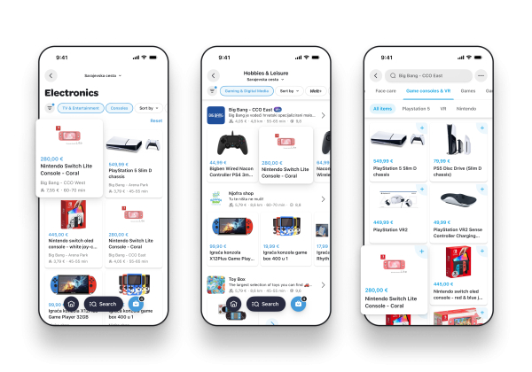 Οι χρήστες μπορούν να αναζητούν και να συγκρίνουν προϊόντα από διαφορετικά καταστήματα απευθείας με βάση το προϊόν, όπως θα έκαναν σε ένα φυσικό εμπορικό κέντρο, αλλά από το κινητό τους.