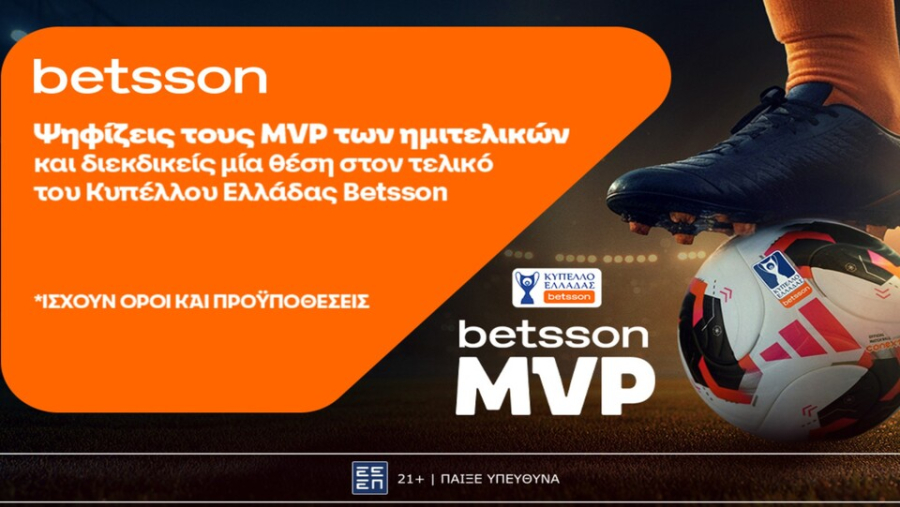 Η Betsson σου δίνει την ευκαιρία να συμμετάσχεις στη Betsson MVP Κλήρωση, να αναδείξεις τους κορυφαίους παίκτες της ημιτελικής φάσης και να διεκδικήσεις μια διπλή πρόσκληση για τον μεγάλο τελικό του Κυπέλλου Ελλάδας Betsson!