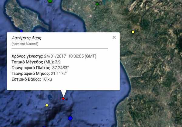 Σεισμική δόνηση μεγέθους 3,9 Ρίχτερ σημειώθηκε πρίν απο λίγο ανοικτά του Κυπαρισσιακού κόλπου και ειδικότερα στις βραχονησίδες «Στροφάδια»