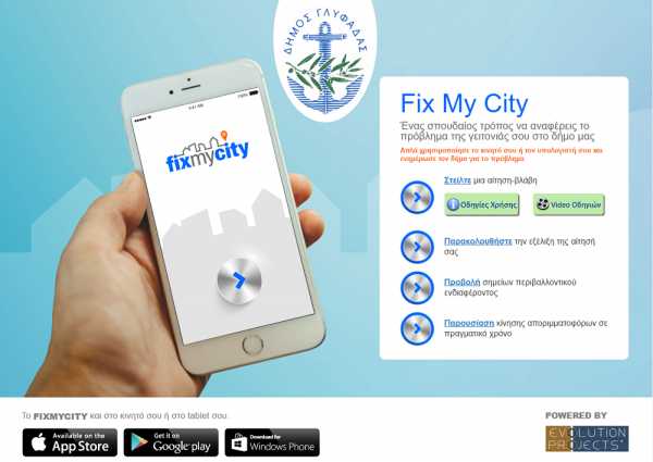 Η εφαρμογή είναι διαθέσιμη τόσο μέσω της εφαρμογής Fix My City όσο και στο http://glyfada.fixmycity.today