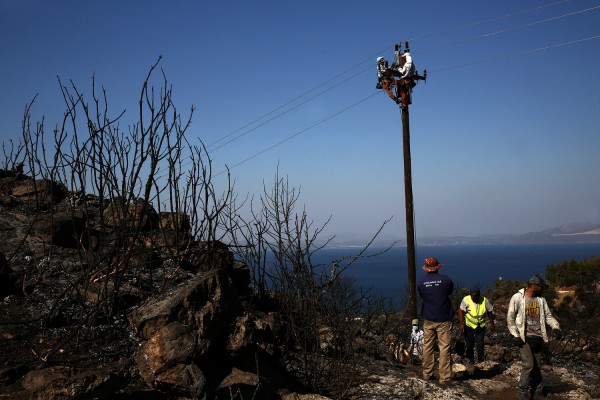 Τα συνεργεία της ΔΕΗ, από χθες το βράδυ εργάζονται στα σημεία όπου υπήρξαν ζημιές σε κολώνες και μετασχηματιστές από τους κεραυνούς και έχουν αντιμετωπίσει τις βλάβες. Πηγή: ΑΠΕ