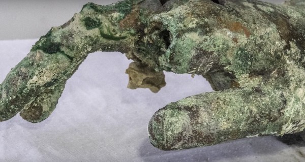 Όπως αναφέρει ανακοίνωση του υπουργείου Πολιτισμού και Αθλητισμού, ανελκύστηκαν ένα χάλκινο τμήμα με πτυχώσεις ενδύματος, προερχόμενο από άγαλμα, και ένα χάλκινο δεξί χέρι, που σώζεται από τον ώμο μέχρι τα δάκτυλα, καθώς και άλλα που μένει να αποσαφηνιστούν. Επίσης, ανελκύστηκε συσσωμάτωμα, που δημιουργήθηκε γύρω από κάποιο σιδερένιο αντικείμενο, το οποίο έχει πλήρως οξειδωθεί και έχει αφήσει το αποτύπωμά του. Στο ίδιο συσσωμάτωμα παρατηρήθηκαν εγκλωβισμένα φύλλα μολύβδου, όστρακα και κομμάτια ξύλου. Μέσα στο συσσωμάτωμα, όπως έδειξε η ραδιογραφία, υπάρχει και μία μεσόμφαλη μεταλλική φιάλη, το είδος μετάλλου της οποίας θα φανεί μετά την απελευθέρωσή της από τον επίπαγο.