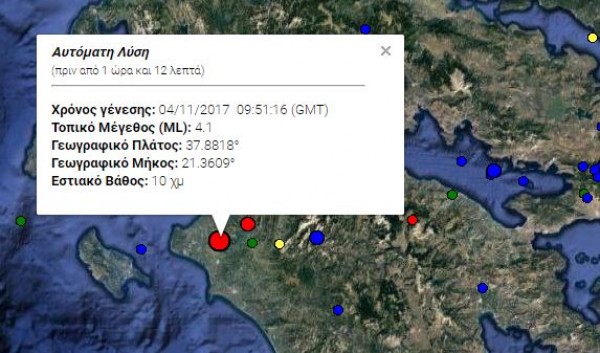 Σεισμική δόνηση έγινε αισθητή λίγο πριν από τις 12:00 το μεσημέρι, σε πολλές περιοχές της Ηλείας και της Αχαΐας