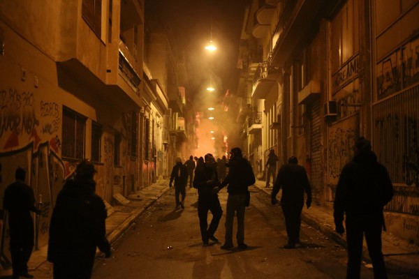 Οι άνδρες των ΜΑΤ επιχειρούν με όποιο διαθέσιμο μέσο έχουν να σβήσουν την φωτοβολίδα, η οποία συνεχίζει να καίει για περίπου ένα λεπτό! Aρχικά, προσπάθησαν να σβήσουν την αναμμένη φωτοβολίδα με πυροσβεστήρα, ωστόσο δεν τα κατάφεραν. Στη συνέχεια επιχείρησαν να σβήσουν τη φωτοβολίδα με τα πόδια.