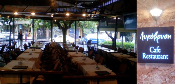 Συνεργείο του δήμου Αθηναίων από τις 8:οο το πρωί φορτώνει τραπέζια και καρέκλες από το από το cafe-restaurant «Λυκόβρυση» ενώ έχουν μαζέψει ακόμη και τις τέντες του μαγαζιού.