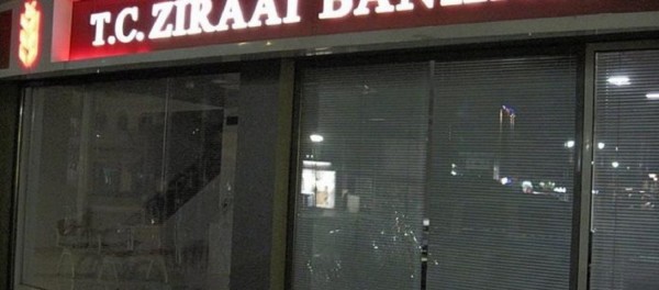 Σύμφωνα με το τουρκικό Μέσο, «αντικυβερνητικοί αναρχικοί» που πετούσαν χαρτιά με μηνύματα υπέρ των Κούρδων, πέταξαν πέτρες προς την κεντρική πόρτα της τράπεζας, προκαλώντας σημαντικές ζημιές.