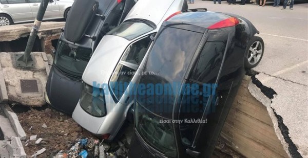 Συνεχίσθηκε και το Σάββατο η κατάρρευση του οδοστρώματος στο υπαίθριο πάρκινγκ, στην Καλλιθέα, απέναντι από τον ΗΣΑΠ Ταύρου.