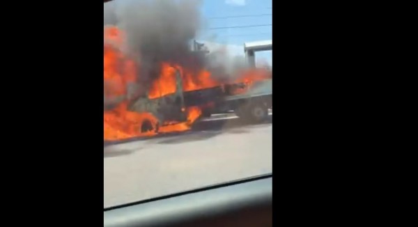 Μέσα σε λίγα λεπτά ξεσπασε πυρκαγιά στο όχημα, η οποία επεκτάθηκε και στην παρακείμενη στάση.