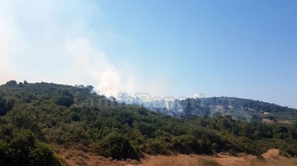 Η φωτιά καίει δασική έκταση με σύμμαχο τις υψηλές θερμοκρασίες και τον αέρα που πνέει στην περιοχή.