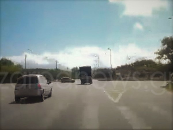 Οι οδηγοί και οι επιβάτες "έιχαν άγιο" ενώ ο οδηγός του φορτηγού, σταματάει αμέσως μετά, τρομαγμένος, προφανώς, από το περιστατικό