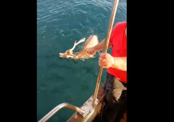 Στο βίντεο που εξασφάλισε το egnomi φαίνεται καρέ-καρέ η διάσωση του άγριου ζώου, το οποίο εντοπίστηκε να κολυμπάει κουρασμένο σε απόσταση 300 περίπου μέτρων από την ακτή.