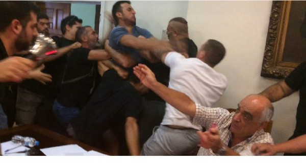 Διαμαρτυρόμενοι πολίτες επιχείρησαν να πάρουν αυθαίρετα τον λόγο, με τον πρόεδρο του οργάνου να μην τους το επιτρέπει. Τότε ξεκίνησε η συμπλοκή και πολίτες που βρίσκονταν στην αίθουσα πιάστηκαν στα χέρια.