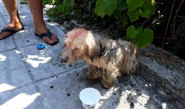 Η δράση του 62χρονου, έγινε αντιληπτή από κατοίκους της περιοχής Σολάρι, όπου βρισκόταν δεμένο το σκυλί, που λόγω της αφόρητης ζέστης και του πετρελαίου στο σώμα του, είχε εκδηλώσει ακραία και επικίνδυνα σημάδια αδιαθεσίας.