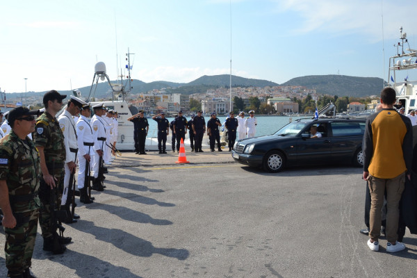 Όπως αναφέρει το ΑΠΕ, το σύνολο των ανδρών του ΛΣ στο νησί, με αγήματα που απέδιδαν τιμές, άνδρες των ξένων ευρωπαϊκών δυνάμεων της Frontex από τα σκάφη τους, όλα τα σκάφη στο λιμάνι, ακόμα και αυτά του Πολεμικού και του Εμπορικού Ναυτικού, με μεσίστιες σημαίες και χαιρετιστήριους συριγμούς, απέδωσαν τιμές στη σορό του εμβληματικού στελέχους του Λιμενικού Σώματος. Του ανθρώπου που, όπως ειπώθηκε από όλους, απέδωσε την εικόνα της Ελλάδας που μάχεται και νικά στη διάρκεια της κρίσης.