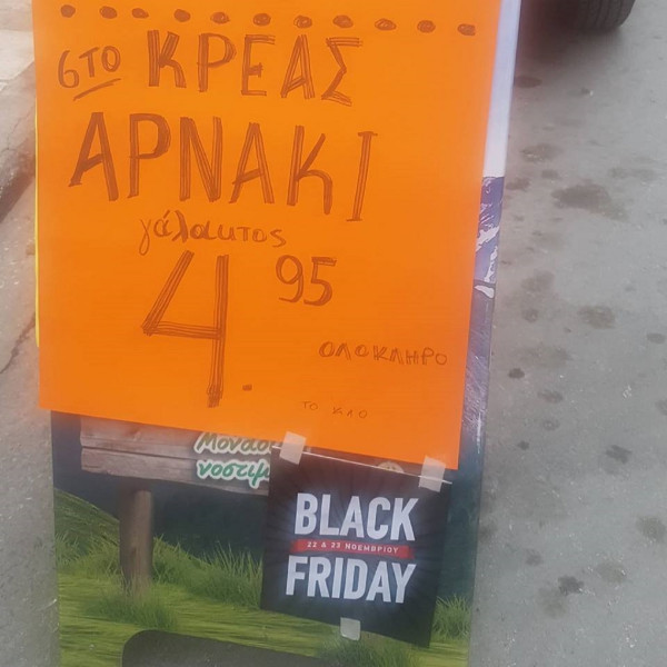Όμως στη Λάρισα το Black friday επεκτείνεται και σε ότι θέλουμε να γευτούμε βέβαια σε τιμές… χώμα. Όπως μπορείτε να δείτε σε κρεοπωλείο επί της οδού Ηπείρου μπορείτε να βρείτε ολόκληρο αρνάκι με μόλις 4,95 ευρώ το κιλό. Βέβαια και τα υπόλοιπα κρέατα θα τα βρείτε σε πολύ χαμηλές τιμές.