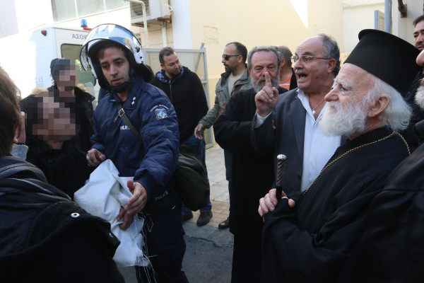 Ειδικότερα, ο αρχιεπίσκοπος κατευθύνθηκε προς τους συγκεντρωμένους αντιεξουσιαστές προκειμένου να τους εξηγήσει ότι η εκκλησία δεν έχει θέση σε τέτοιου είδους αντιπαραθέσεις.Ακολούθησε ένταση και ο αρχιεπίσκοπος αποχώρησε πεζός, εισπράττοντας όμως ταυτόχρονα ύβρεις από τους συγκεντρωμένους.