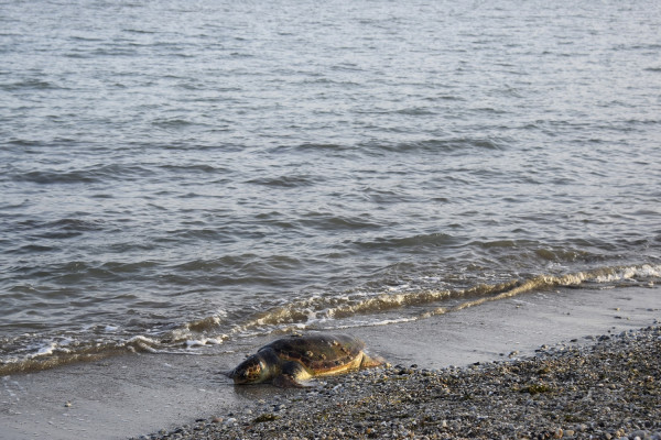 Μία θαλάσσια χελώνα του είδους καρέτα - καρέτα εντοπίστηκε νεκρή μεσημβρινές ώρες σήμερα στο λιμάνι Κορίνθου.