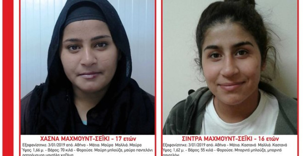 Στις 3/01/2019, και ώρα 14:30, εξαφανίστηκαν από την περιοχή των Πατησίων στην Αθήνα η Μαχμούντ-Σείκι (επ.) Χάσνα(ον.),17 ετών και η Μαχμούντ-Σείκι(επ) Σίντρα(ον), 16 ετών συριακής καταγωγής.
