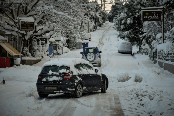 Παράλληλα, κανονικά διεξάγεται πλέον η κίνηση των οχημάτων στη λεωφόρο Διονύσου, που είχε διακοπεί λόγω της χιονόπτωσης.